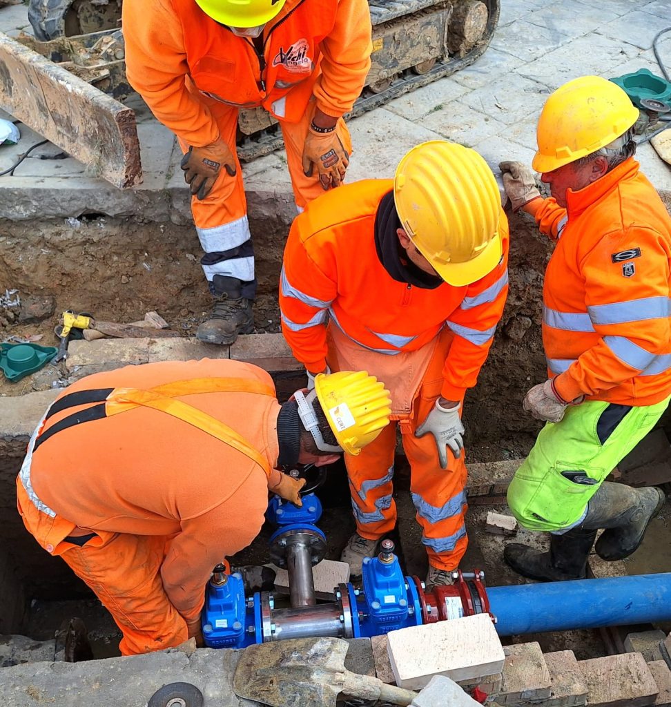 Si è svolto questa mattina lunedì 20 ottobre il sopralluogo congiunto dell’amministrazione comunale e di Acquedotto del Fiora in Piazza del Campo, dove AdF sta portando avanti il progetto di rinnovamento dell’anello della condotta idrica che percorre la storica piazza, cuore pulsante della città. Un intervento necessario, di portata storica, grazie al quale vengono progressivamente sostituite le precedenti tubazioni che risalgono ai primi anni del Novecento.